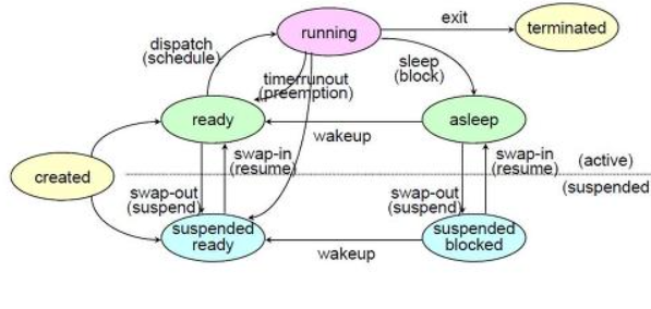 Suspended Ready : 메모리를 뺏긴 ready 상태, swap device 에 memory image를 저장해둠